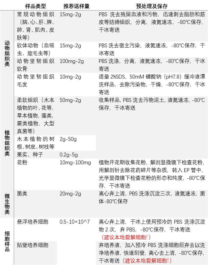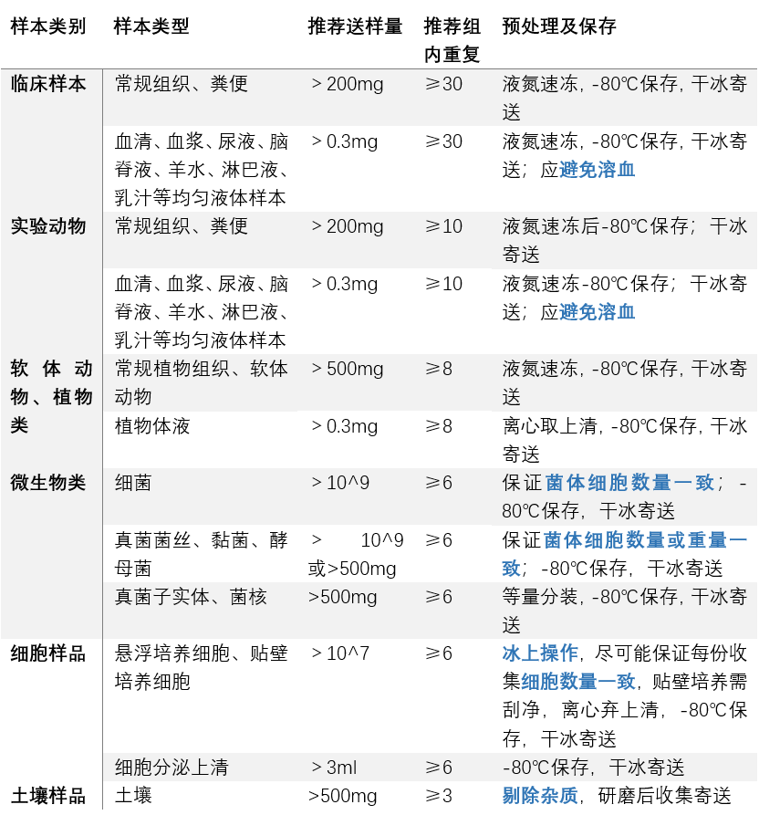 代謝組學(xué)送樣要求: