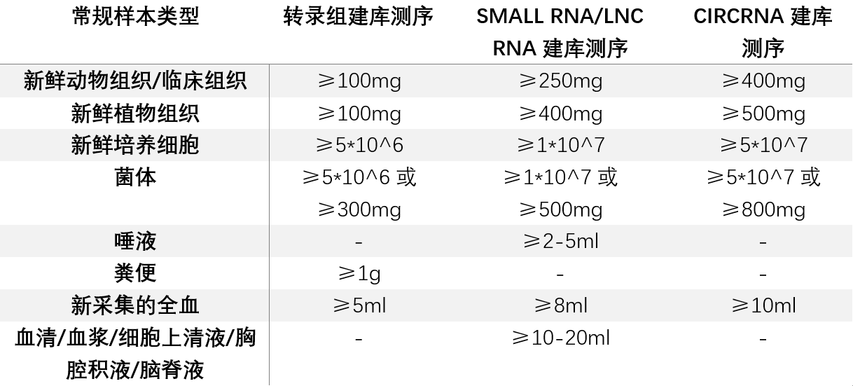 轉(zhuǎn)錄組學(xué)送樣要求: