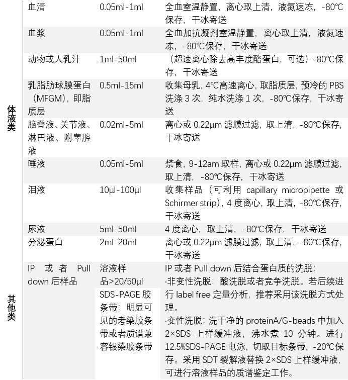蛋白組學(xué)送樣要求: