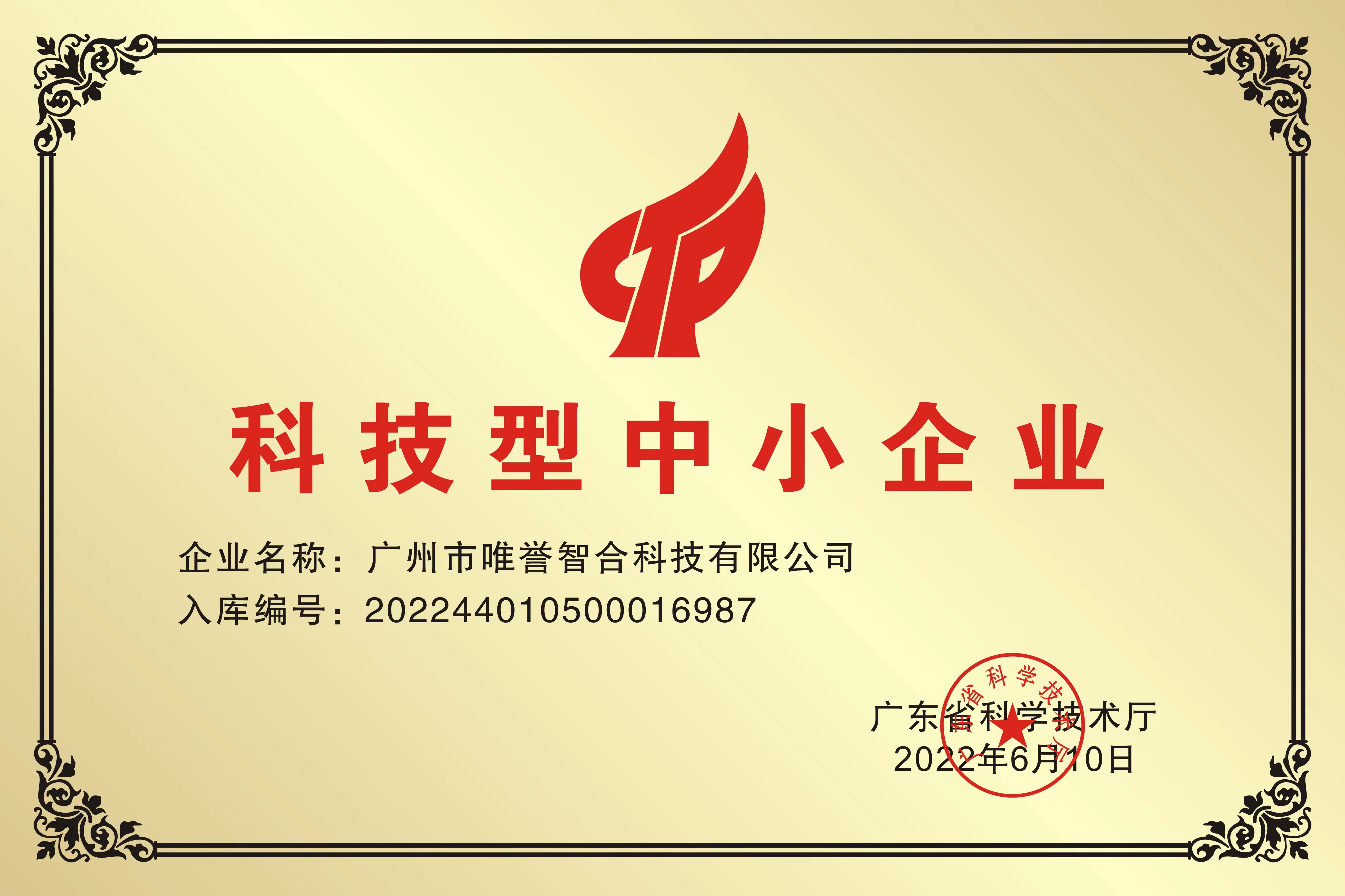 廣州市唯譽(yù)智合科技被認(rèn)定為“國(guó)家級(jí)科技型中小企業(yè)”。